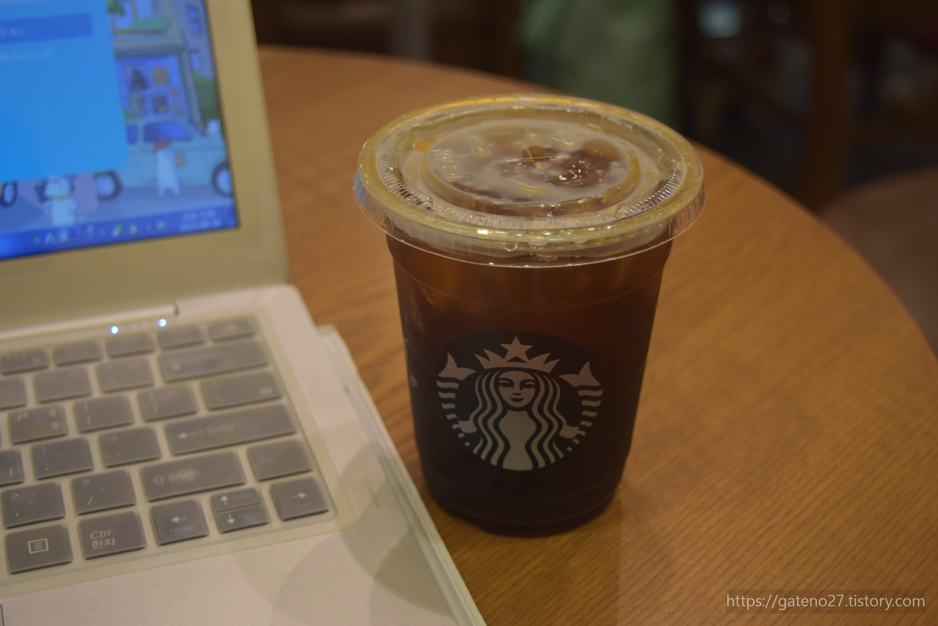어쩔 수 없이 잠깐 업무를 할 곳(=와이파이가 되는 카페)을 찾았다. 1층에 스타벅스가 있길래 일단 착석. 음료는 늘 마시던 걸로.