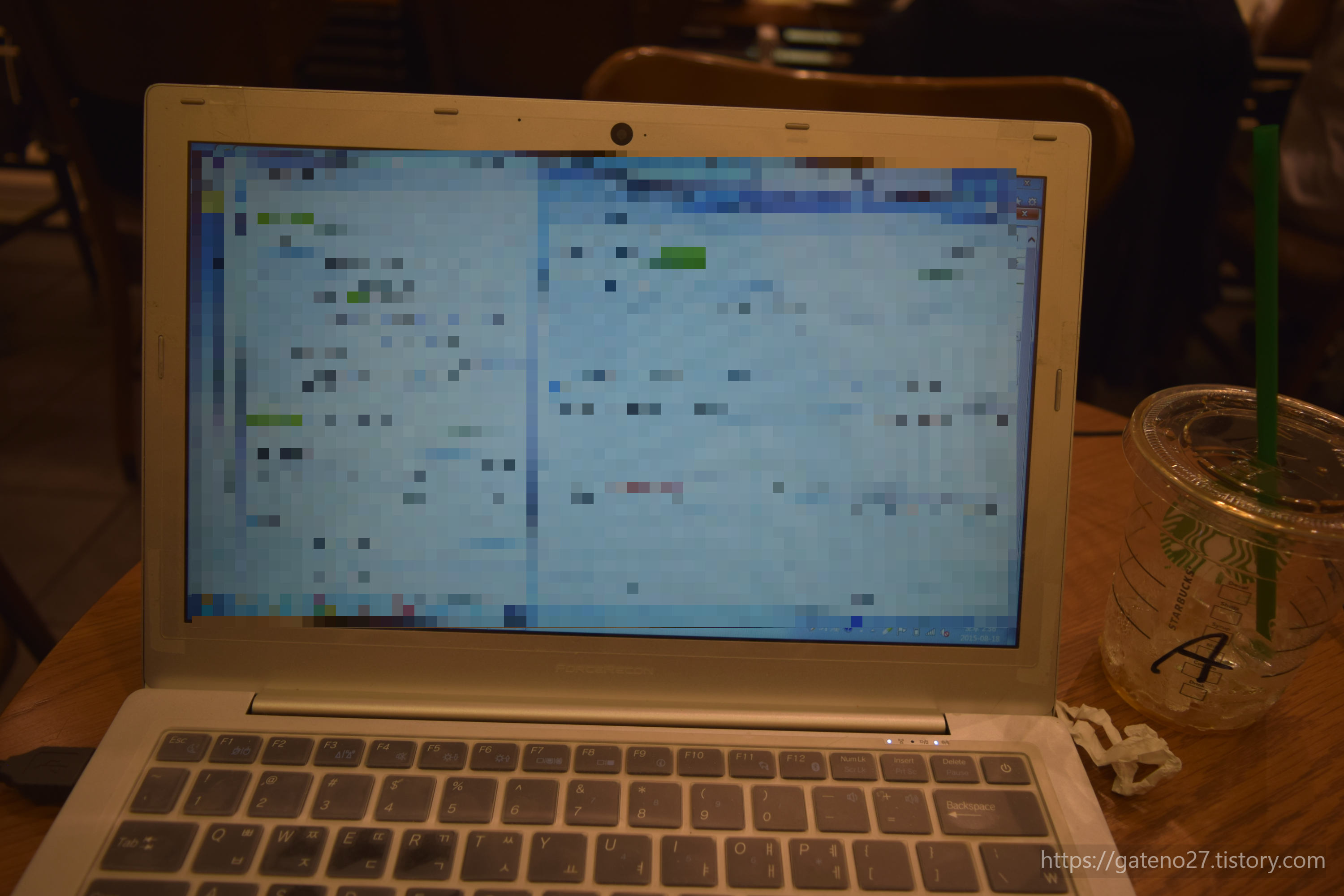 당시 저렴하게 구입해서 열심히 쓴 나의 일명 '인민에어' 노트북. 크기와 무게가 가벼운 편이라 가방에 넣고 다니기 참 좋긴 하다. 이렇게 일도 하고 말이야.