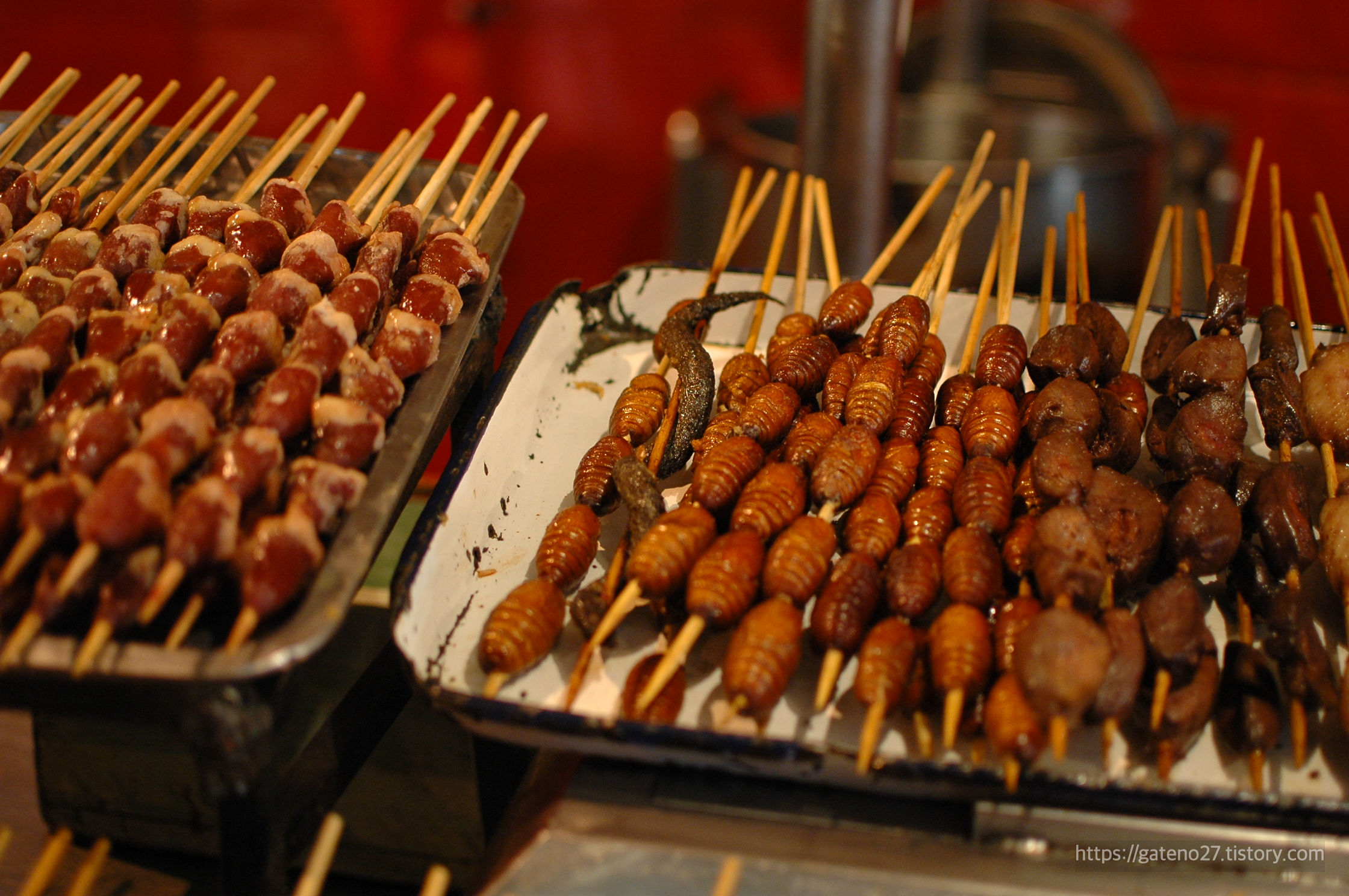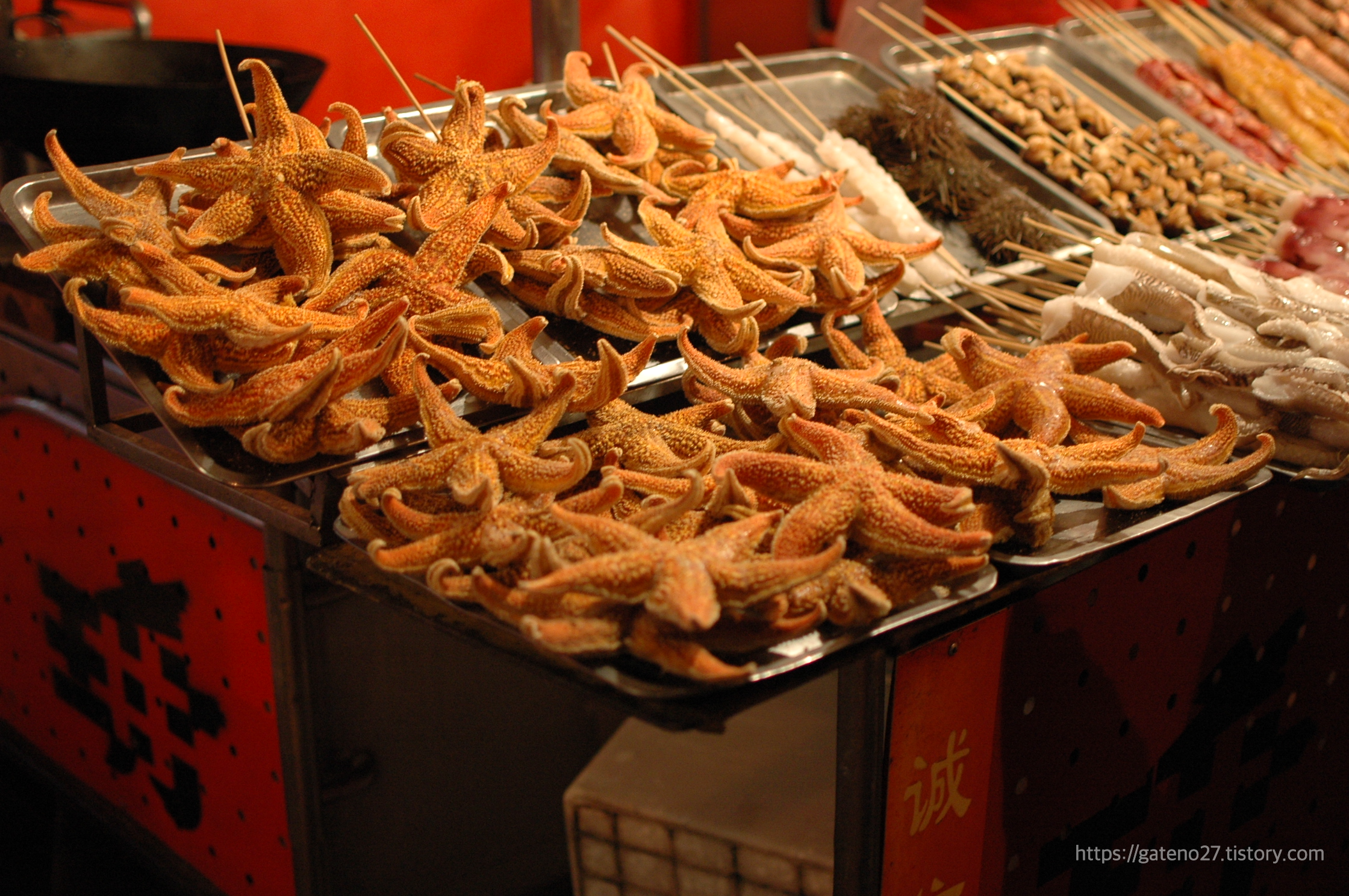 불가사리 튀김, 전갈 꼬치, 뱀 꼬치, 지네 구이, 거미 구이, 뭐 요런 것들이 있다.