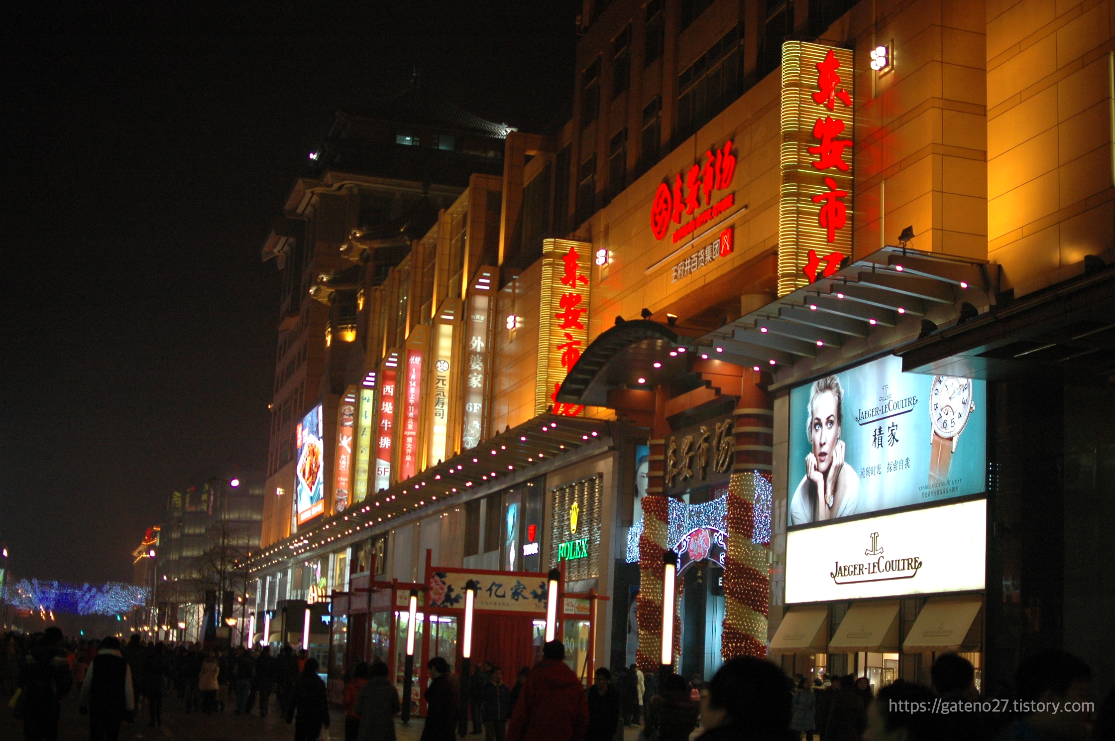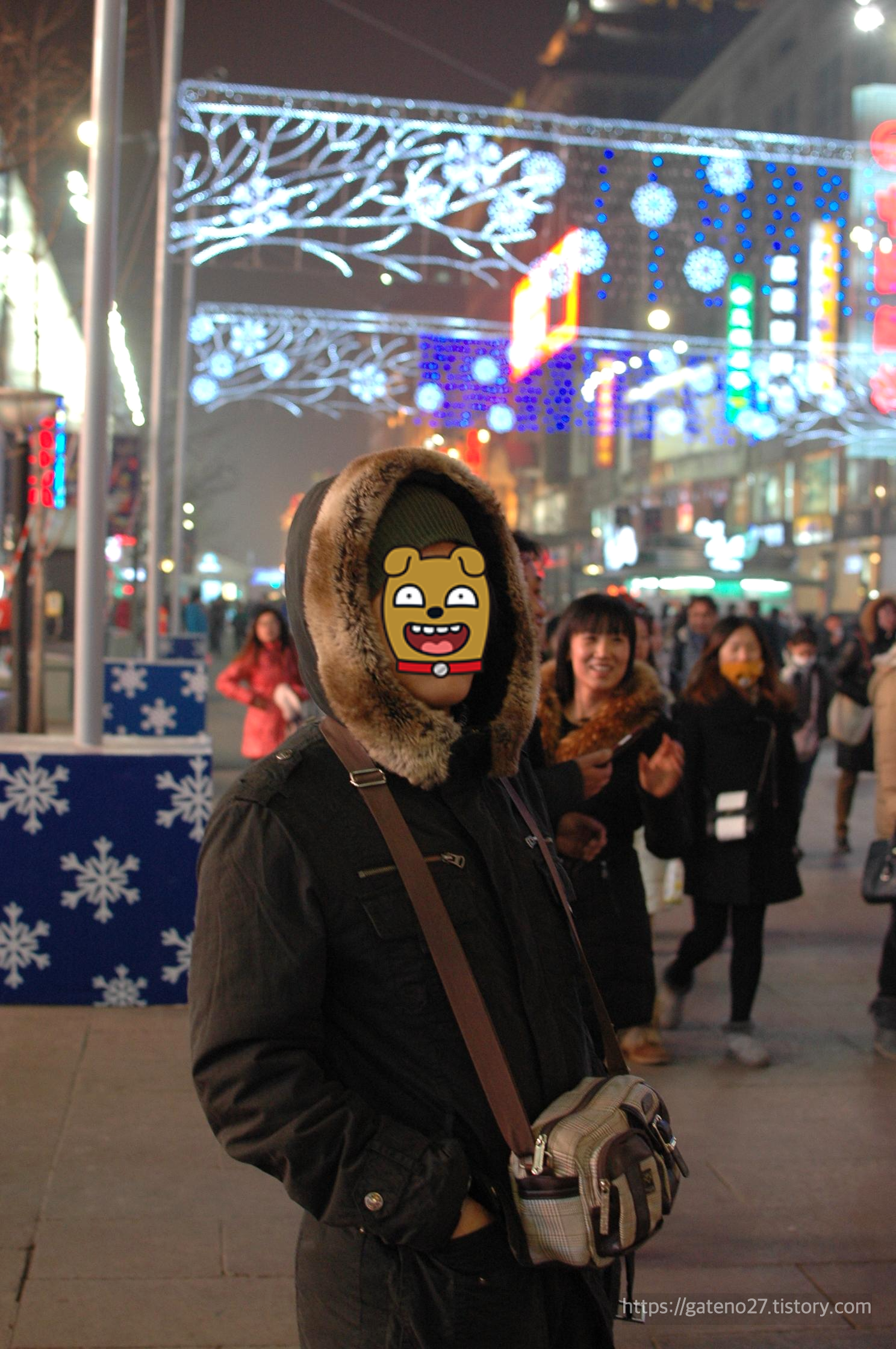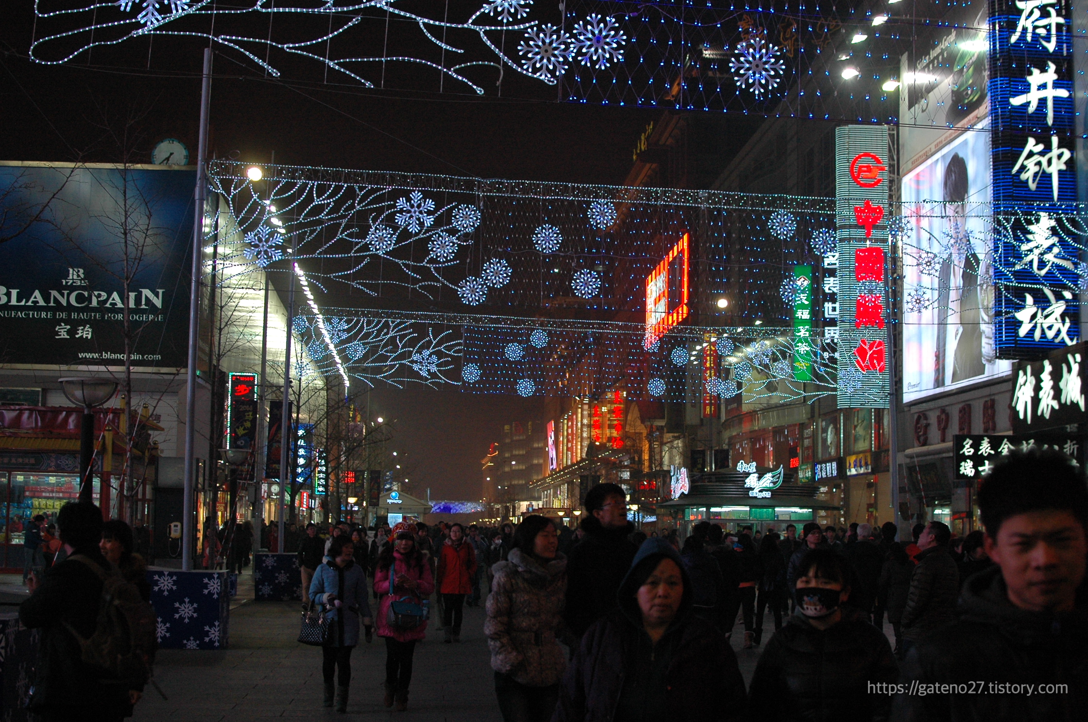 반짝거리는 조명들이 꽤 많이 설치되어 있어서 연말연시 분위기가 물씬 풍겼다. 넓은 보행자 전용길(Wangfujing Pedestrian Street) 양쪽으로 다양한 가게들이 자리하고 있었다.