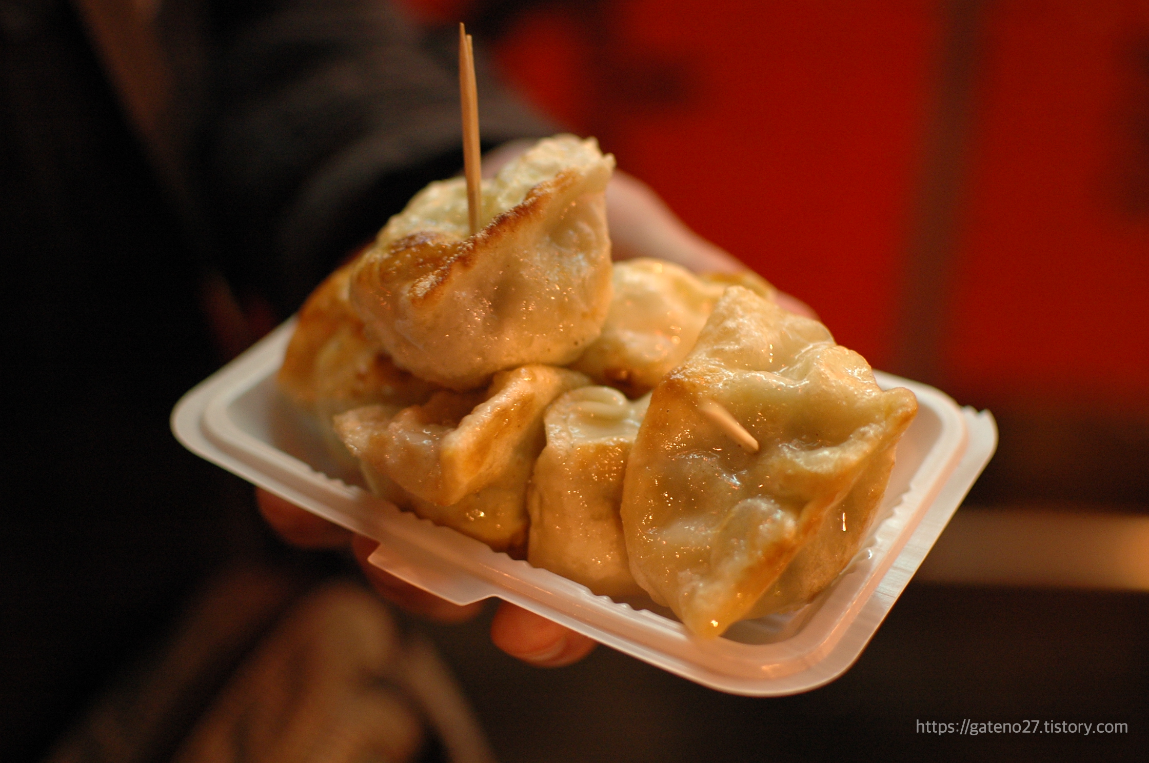 아무튼 우리도 뭐라도 먹어보자 싶어서 꽤나 정상적인 만두 종류의 음식을 시켜 먹어 보았다. 첫 번째로 먹어 본 건 우리나라의 군만두와 거의 흡사한, 튀김만두 지안지아오(Jian jiao, 煎饺)다.