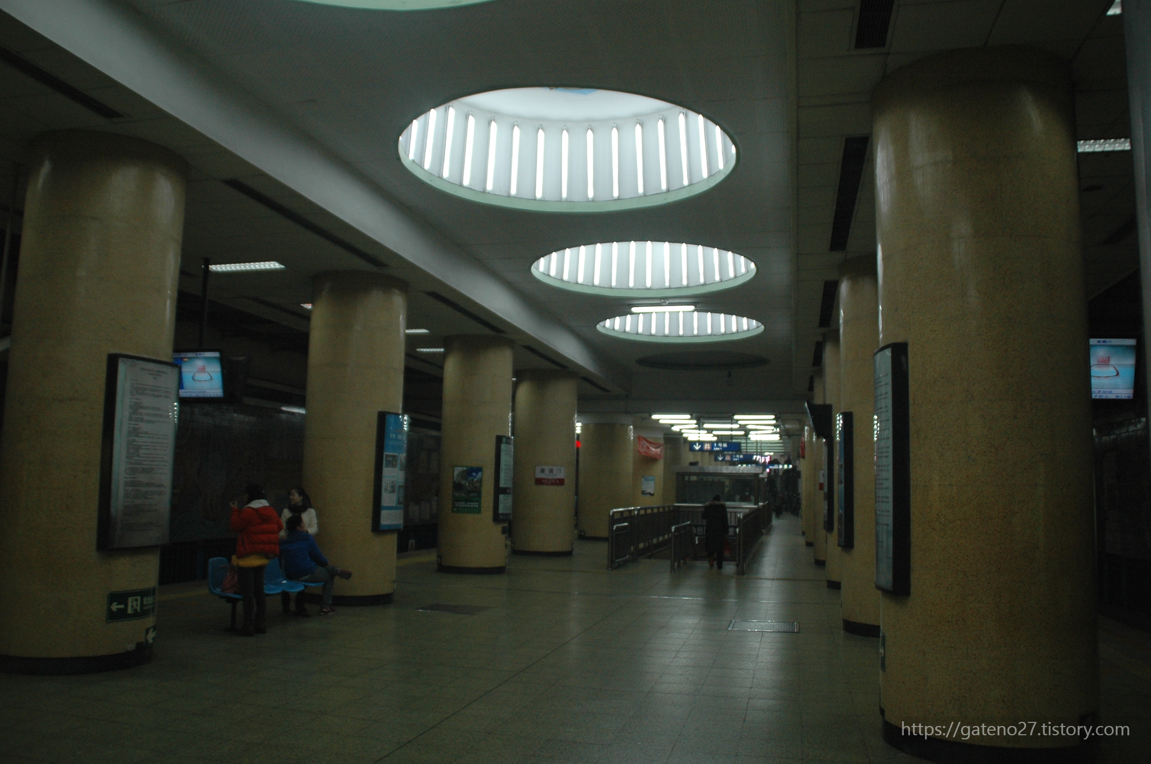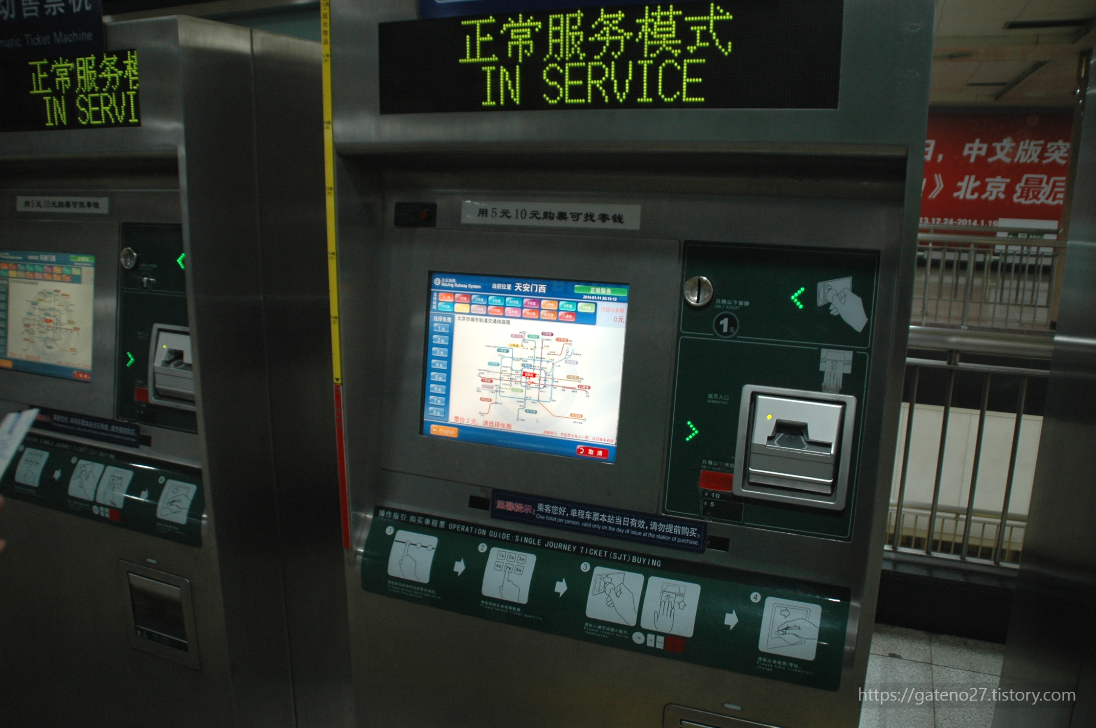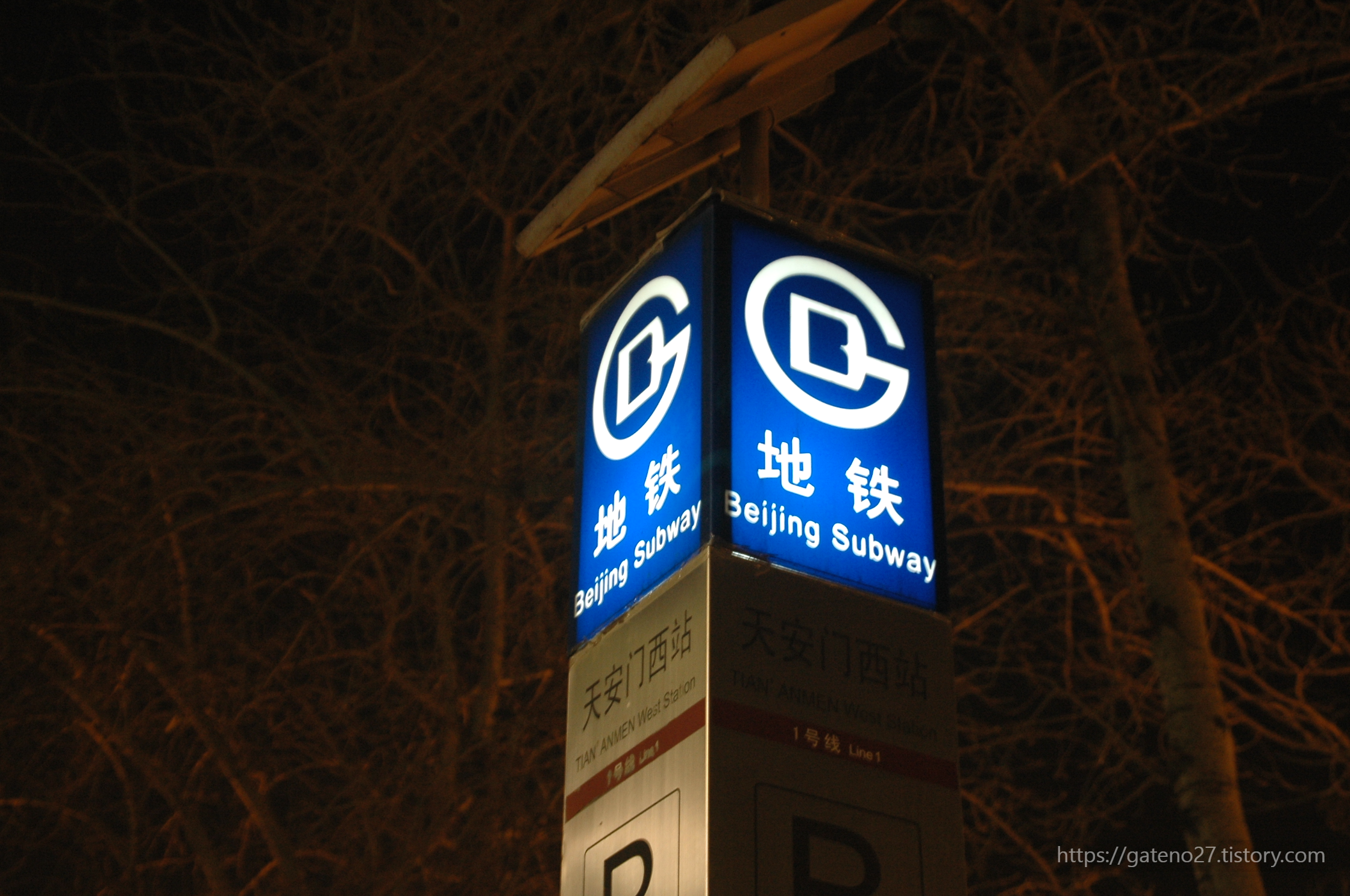 이제 지하철을 타러 내려갔다. 아까 한 번 타 본 경험이 있으니 그리 어렵진 않다. 첫 번째 코스는 이곳 톈안먼시역(天安门西站 / Tiananmen West Station)에서 네 정거장 거리에 있는 젠궈먼역(建国门站 / Jianguomen Station)이다.