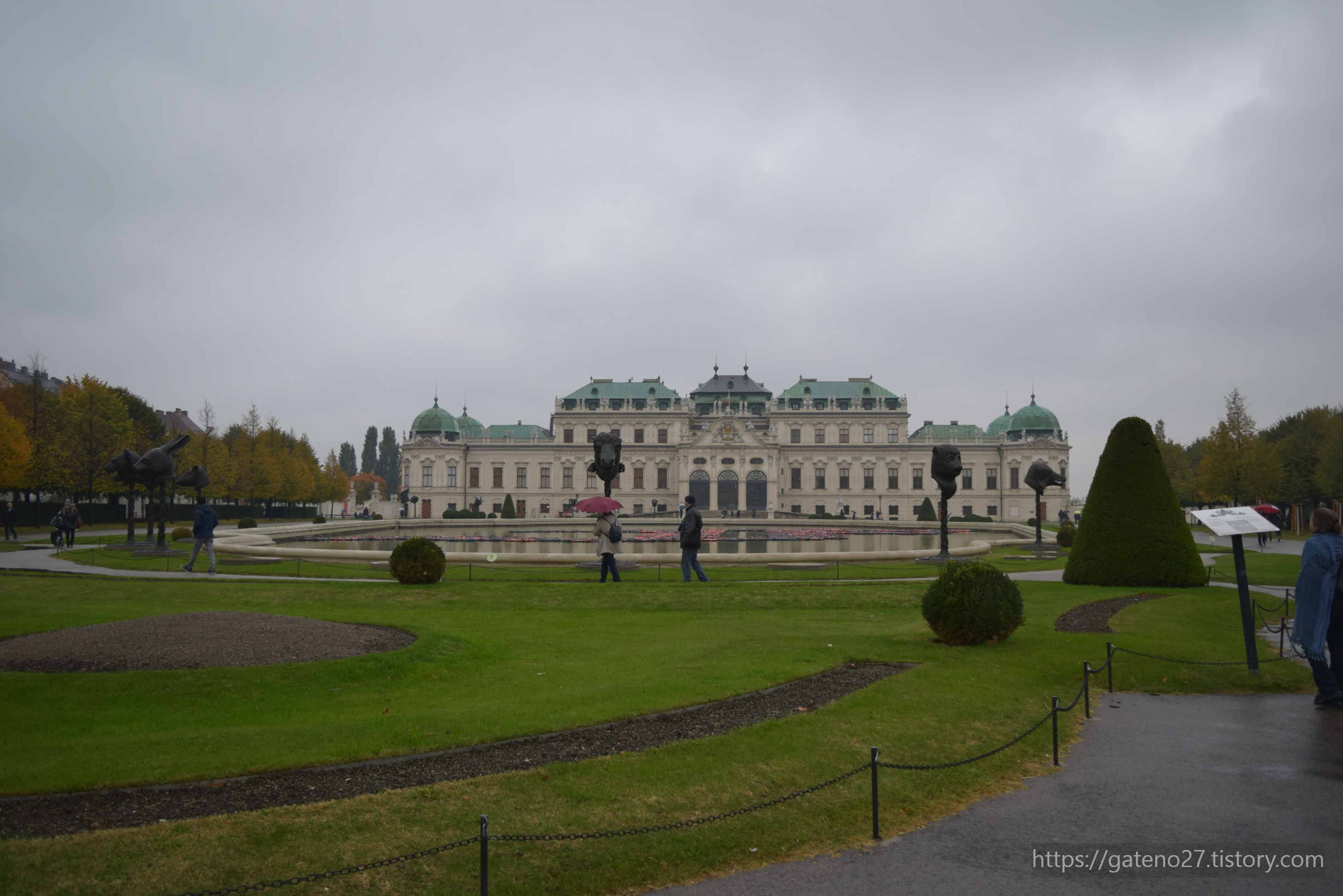 얼마 지나지 않아, 벨베데레 궁전으로 들어가는 입구가 등장했다. 벨베데레 궁전은 크게 상궁(Oberes Belvedere)과 하궁(Unteres Belvedere)으로 나누어져 있고(현대미술 작품이 전시된 '벨베데레 21'도 있다), 그 사이엔 벨베데레 정원이 자리하고 있다.
