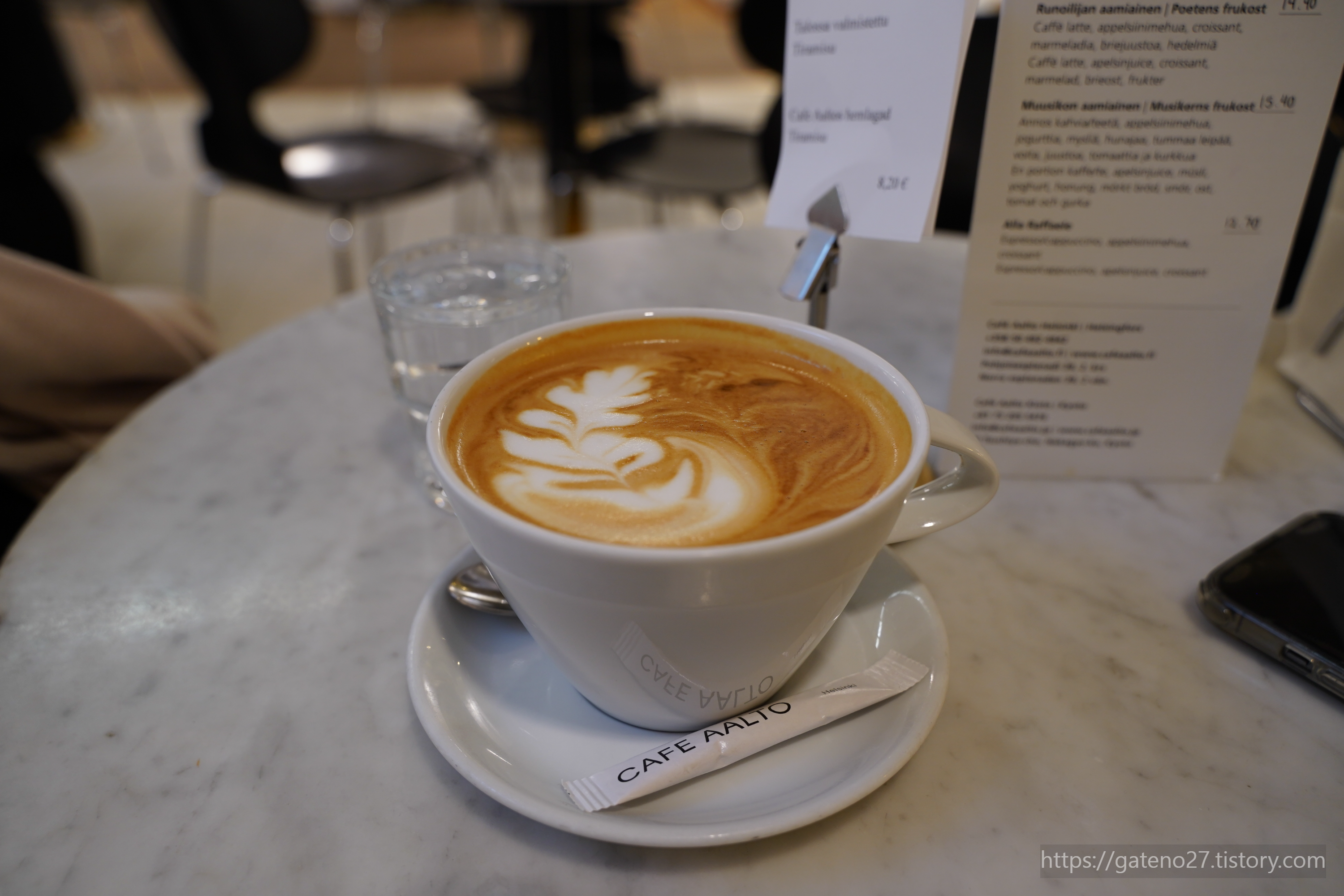 자리에 앉아 있으면 점원분이 오셔서 주문을 받아 주셨다. 아침을 먹고 왔으니, 간단히 라떼 한 잔 주문. 헬싱키에 머무를 시간이 길진 않지만, 라떼 한 잔의 여유 정도는 괜찮겠다 싶었다.