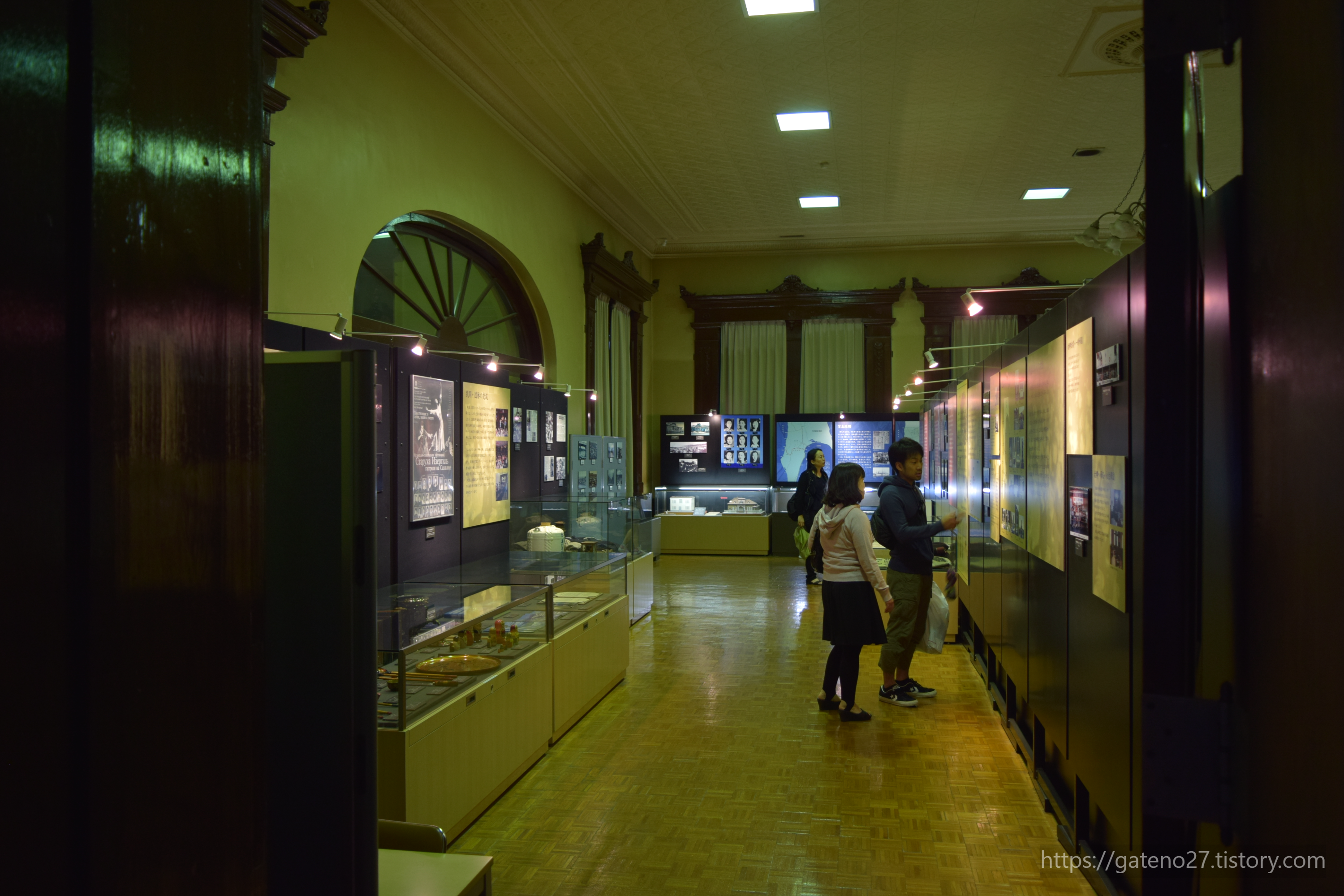 일단 2층부터 둘러보고 1층으로 내려갈 계획을 세웠다. 옛 역사를 보여주는 그림들, 당시 모습을 재현해 둔 회의실 모습 등이 눈에 들어온다.