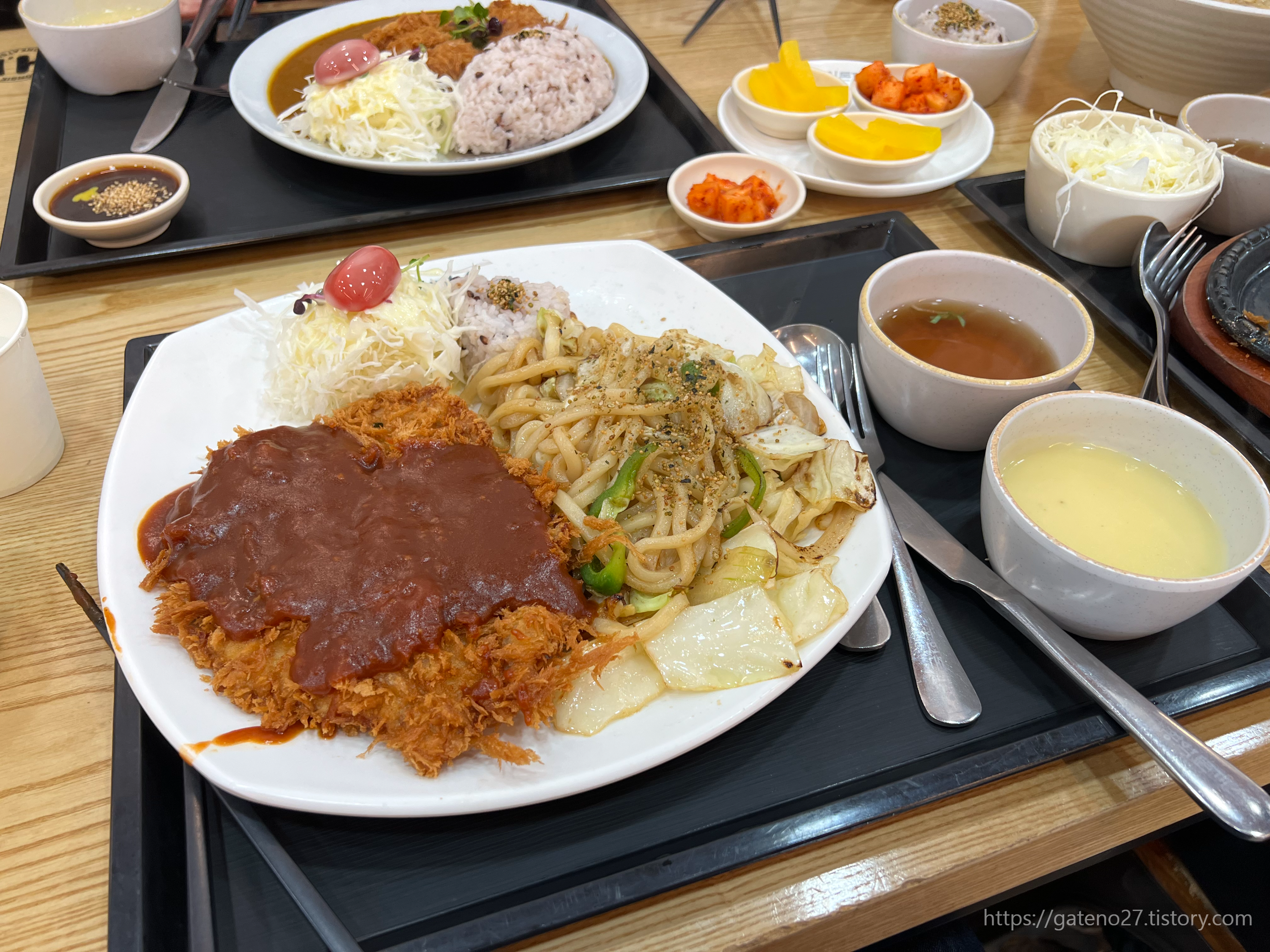 메뉴들은 돈까스 뿐만 아니라 파스타, 우동, 볶음밥 등 간단하고 다양한 경양식 중심. 아이들을 데리고 오기에 크게 부담 없는 메뉴들이었다.