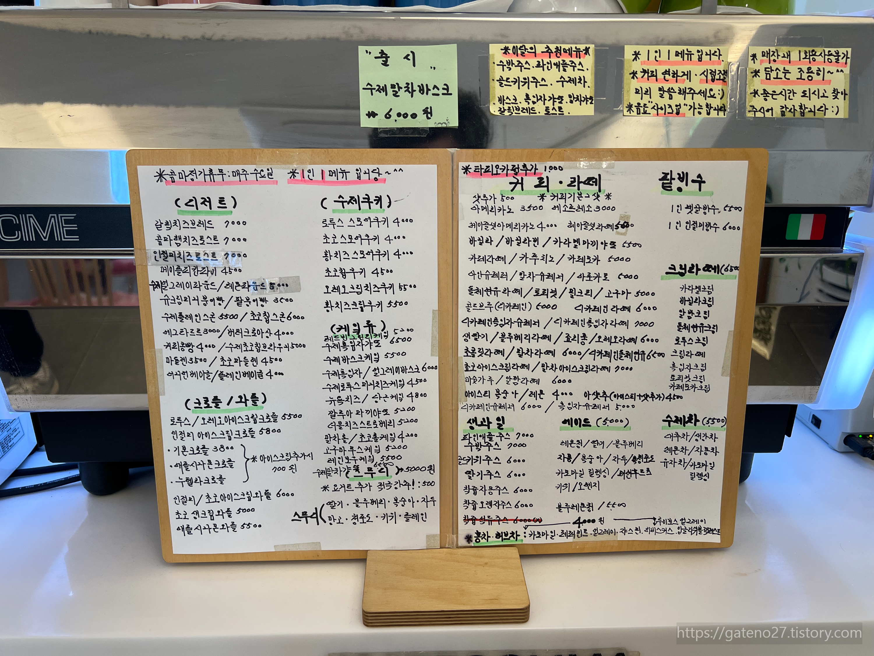 아마도 사장님이 하나하나 직접 손으로 쓰셨을 메뉴판을 보며 주문을 했다. 나는 늘 마시는 아이스아메리카노.
