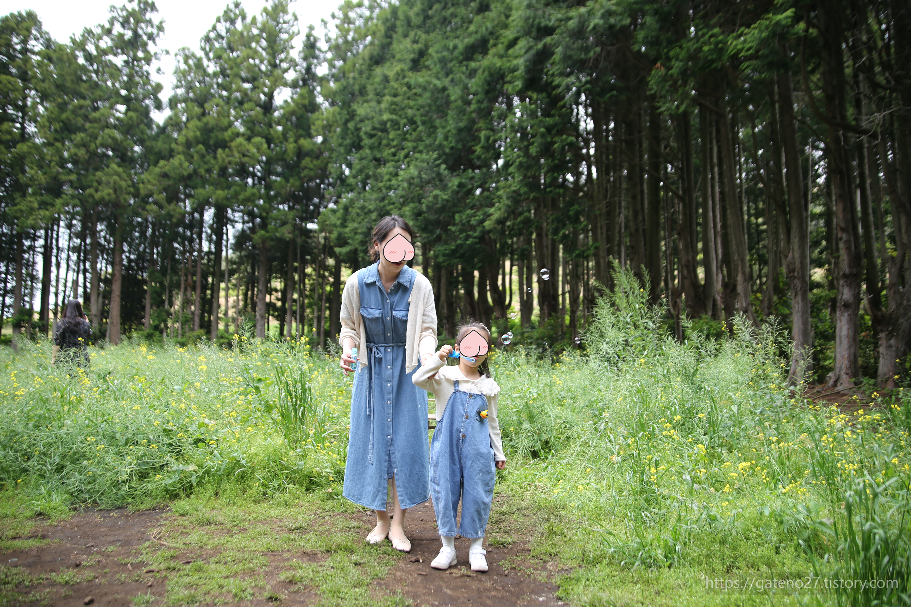 비밀의 숲은 편백나무 숲부터 넓은 초원, 돌담과 오두막 등 제주의 다양한 자연을 한 곳에서 체험할 수 있도록 구성되어 있었다. 사려니숲길이나 비자림과는 또 다른 느낌.