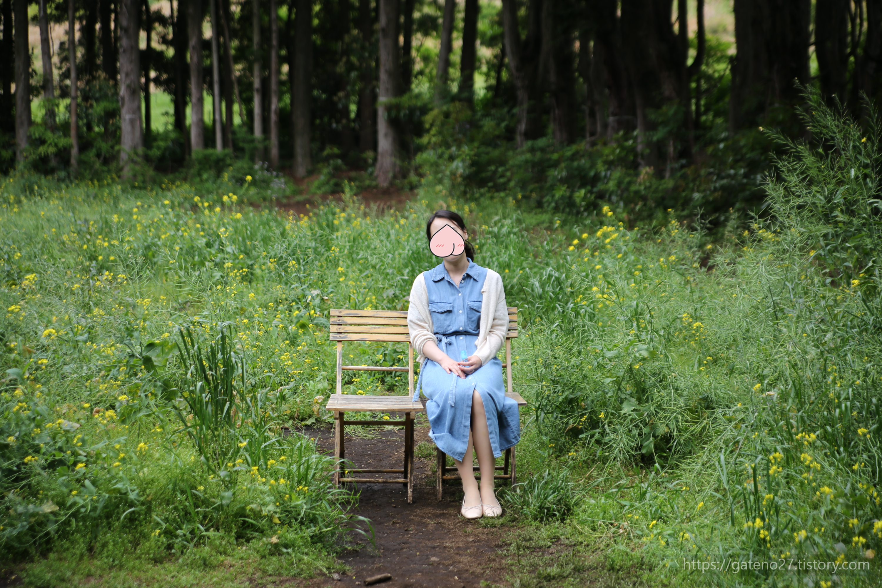 입구에 주차를 하고, 민트색 캠핑카를 찾아갔다. 그리고 입장료 결제 후 입구에서 작가님을 만나 숲을 걸으며 바로 촬영을 시작했다. 나 또한 작가님 뒤에서 찰칵찰칵.