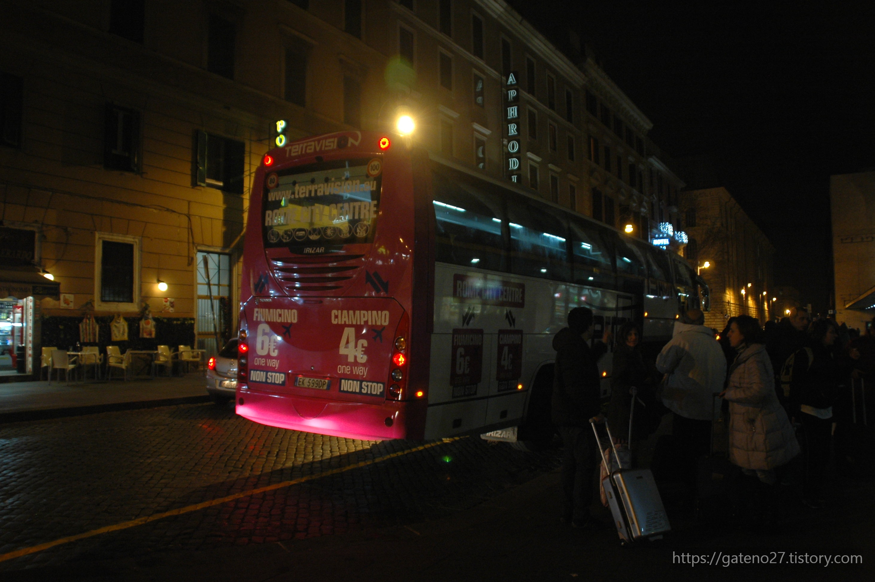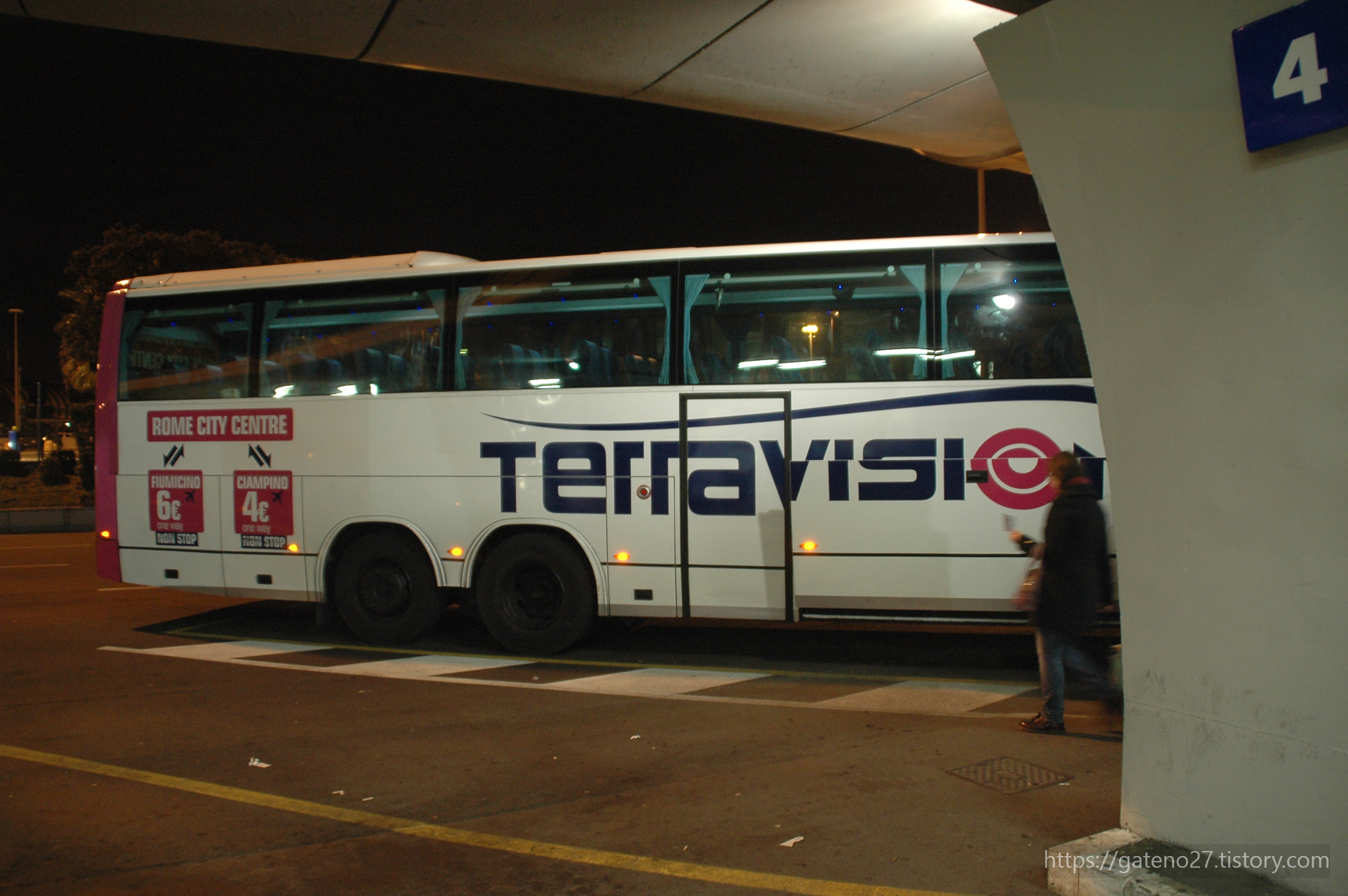 한국은 이미 새벽이지만, 이곳은 아직 저녁. 피곤하고 졸리니 얼른 숙소에 체크인을 해야겠다고 마음먹었다. 우리 숙소는 로마 여행의 중심인 테르미니역 근처 호스텔을 예약해 두었기에, 공항에서 테르미니역으로 가는 '테라비전(Terravision)' 버스를 이용했다.