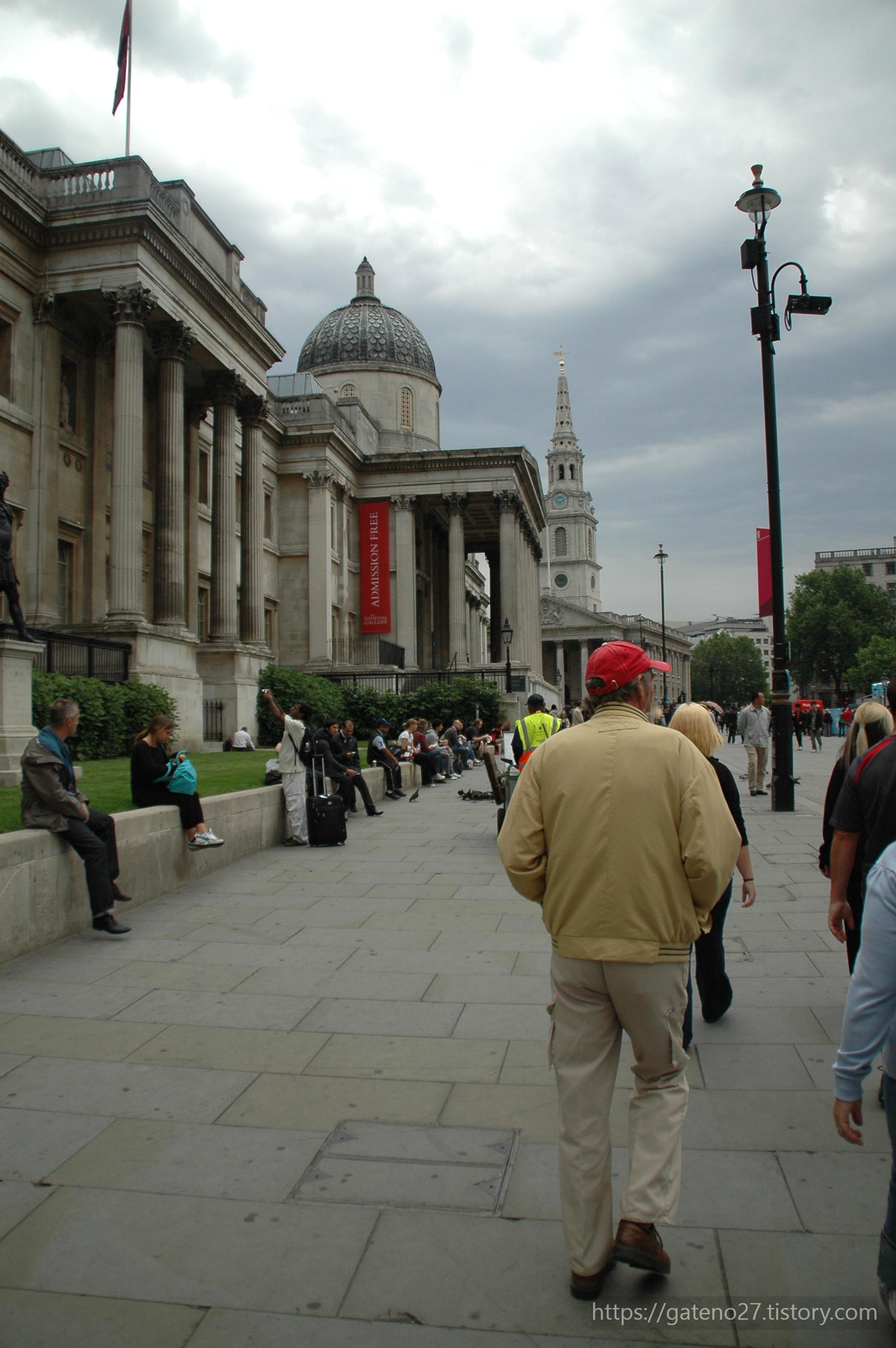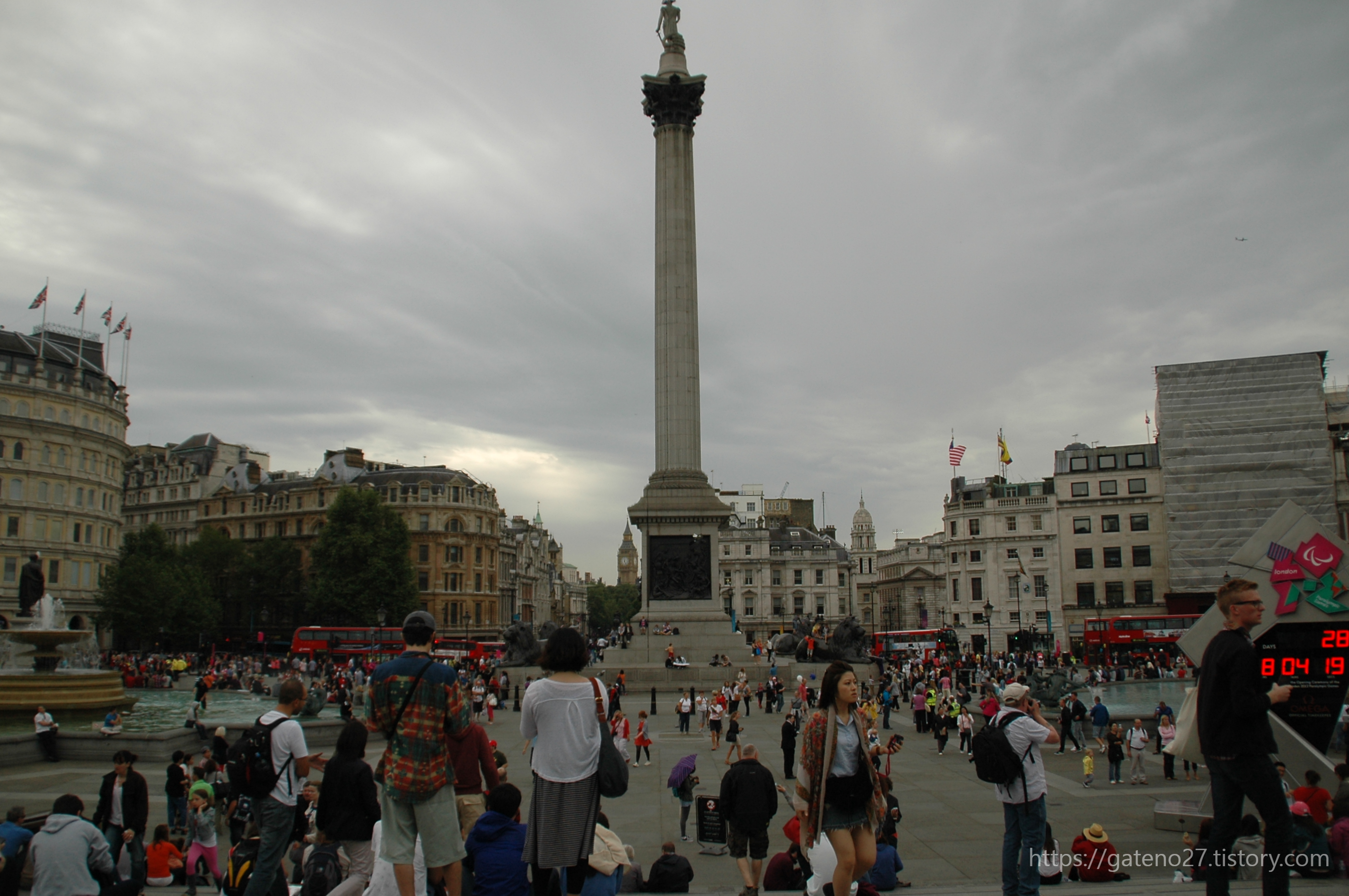 런던의 중심, 트라팔가 광장(Trafalgar Square)에 도착했다. 높이 55m의 넬슨 기념탑을 중심으로, 내셔널 갤러리를 비롯한 여러 관광명소들이 모여 있다. 광장 주변은 여행객과 런더너들로 언제나 분주하다. 런더너들이 가장 즐겨 찾는 곳이라는 트라팔가 광장.
