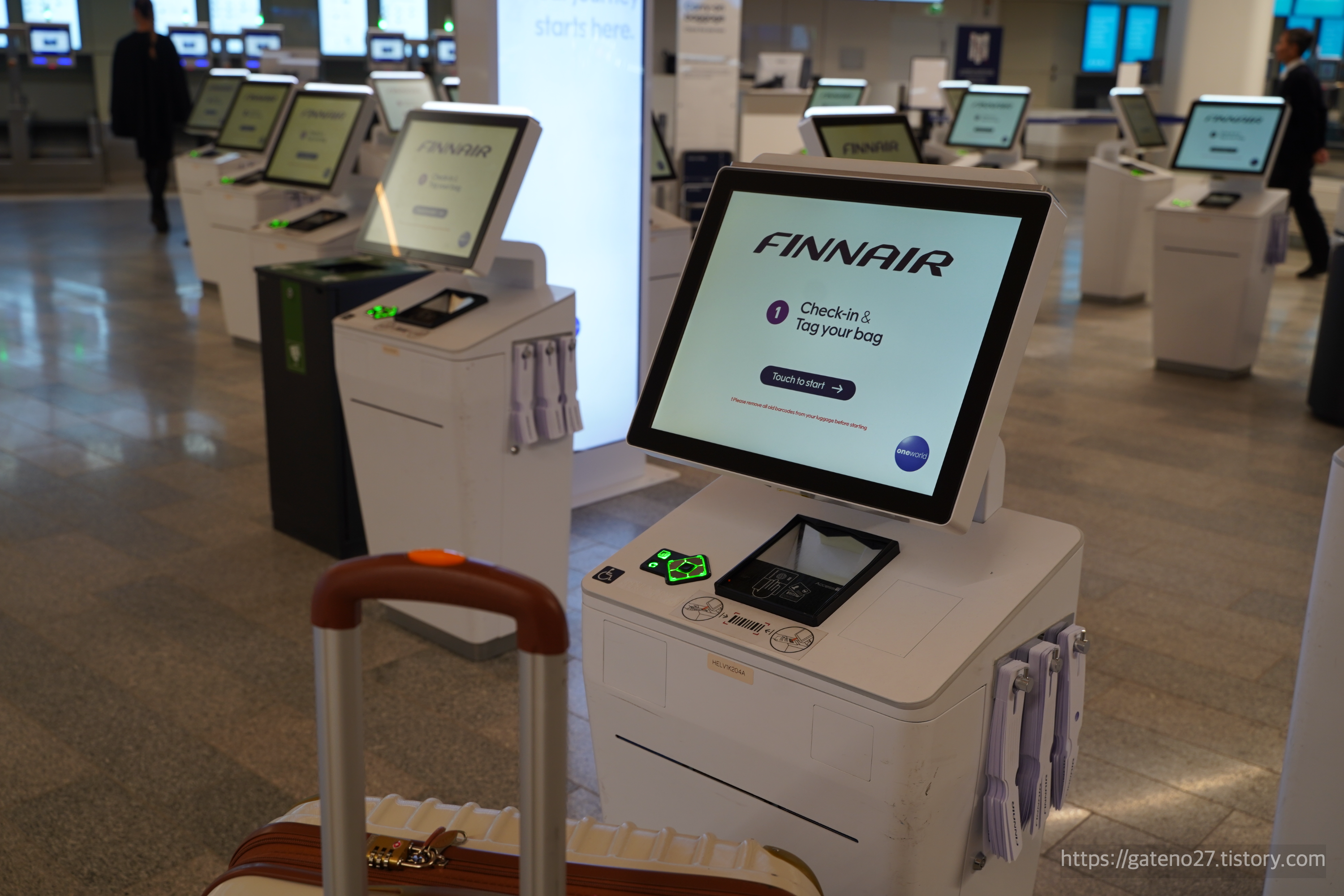 공항 체크인 카운터의 대부분은 핀에어가 차지하고 있었다. 핀에어 또한 요즘 대세(?)에 맞게 셀프 체크인을 및 백드롭을 해야 했다.