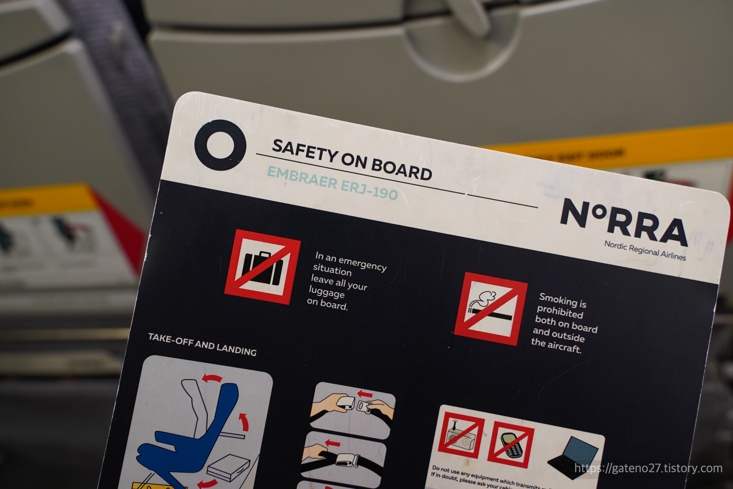 죄다 핀에어 로고로 뒤덮혀 있지만, 세이프티카드를 보니 이 항공기가 핀에어가 아닌 노라 소속인 것이 느껴진다.