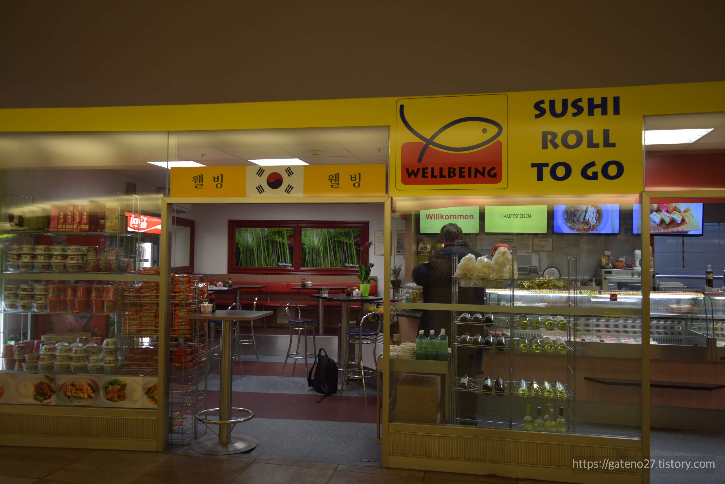 카를스플라츠 역 안으로 들어가니 난데없이 태극기가 그려진 가게가 하나 나온다. '웰빙'이라는 이름의 한식당...인데, 후기들을 보면 일본인이 운영하는 한식당 겸 일식당인 느낌.