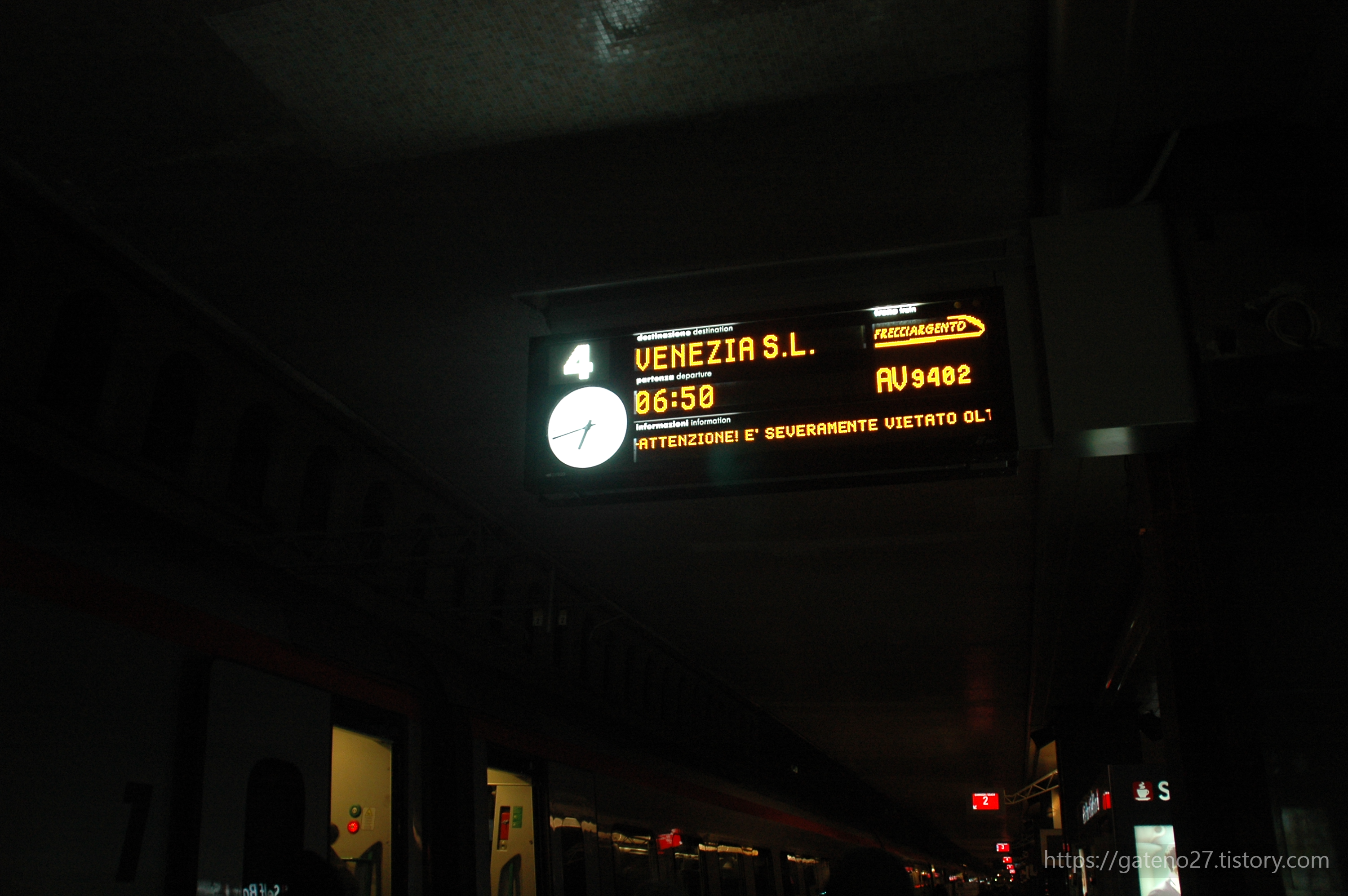 피렌체행 고속열차(프레치아로사, Frecciarossa) AV9402편 기차는 로마 테르미니 역에서 아침 6시 50분에 출발한다. 베네치아가 종점이니 잠들지 않도록 정신 바짝 차려야지.