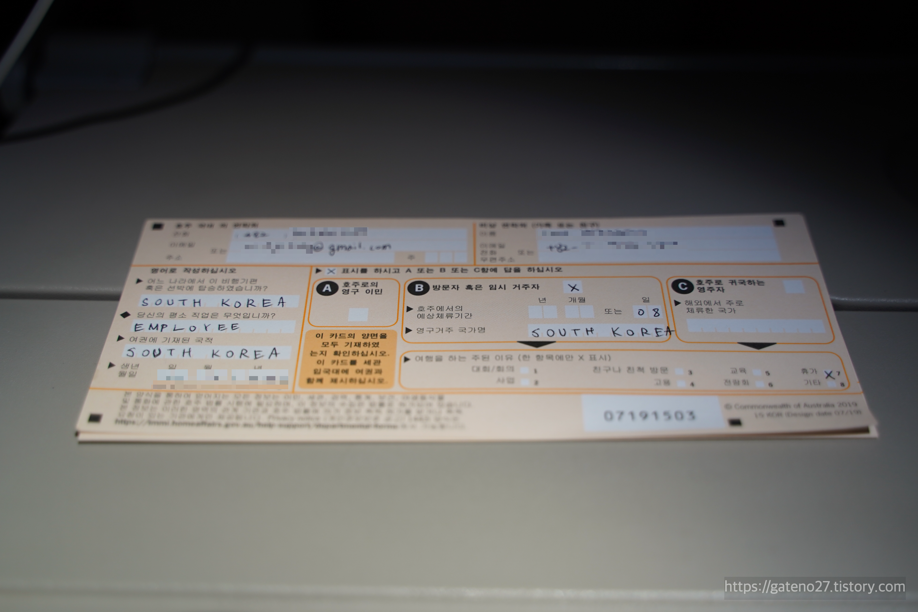 📝 호주 입국신고서 작성하기