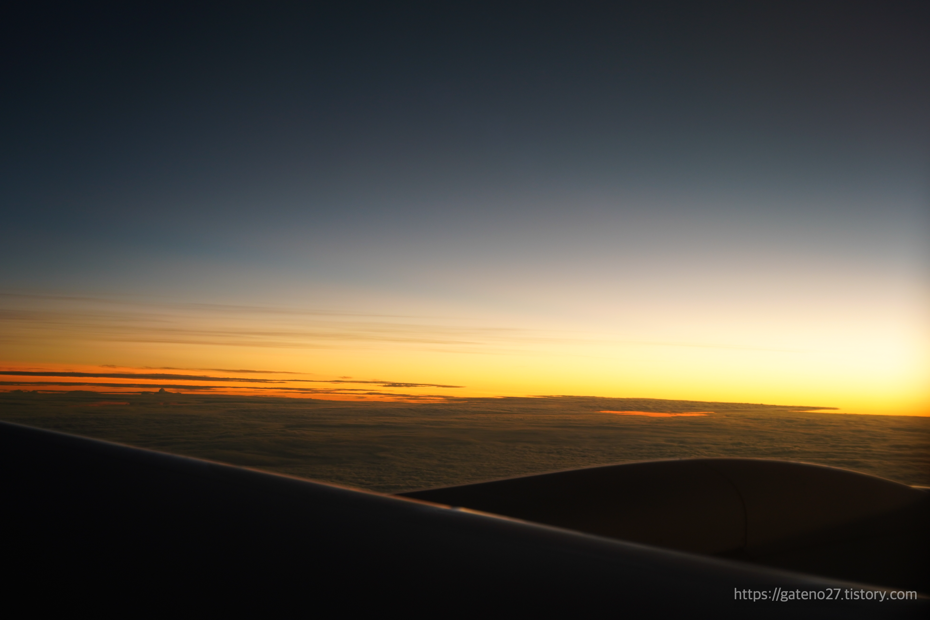 하늘에서 보는 일출은 좀 더 특별한 느낌이다. 창 밖으로 호주 대륙인지, 아니면 구름인지 모를 형체가 눈에 들어온다.