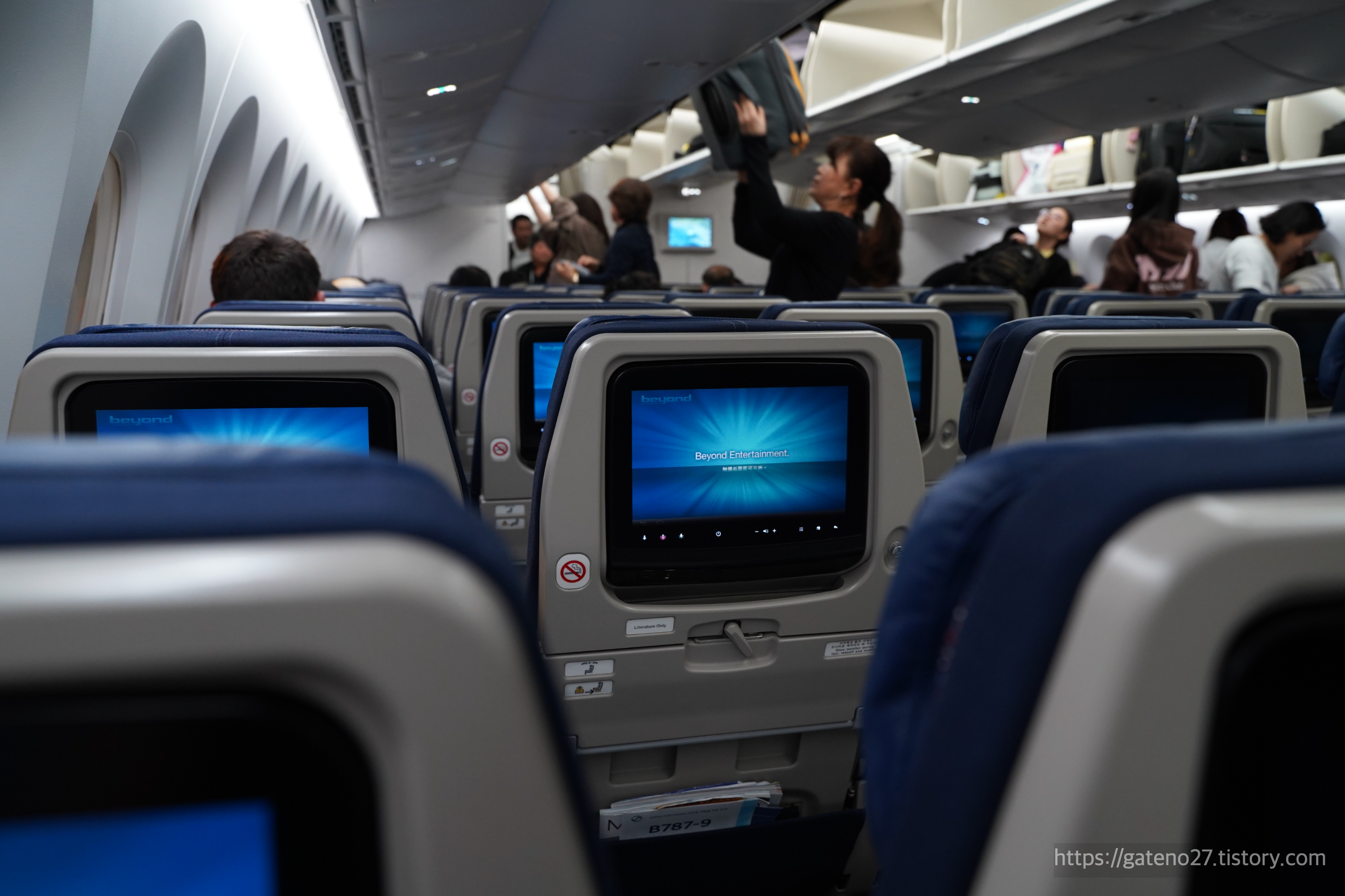 3-3-3 배열의 이코노미 좌석에 사람들이 꽤 많이 들어찼다. 거의 만석인 듯 하다.