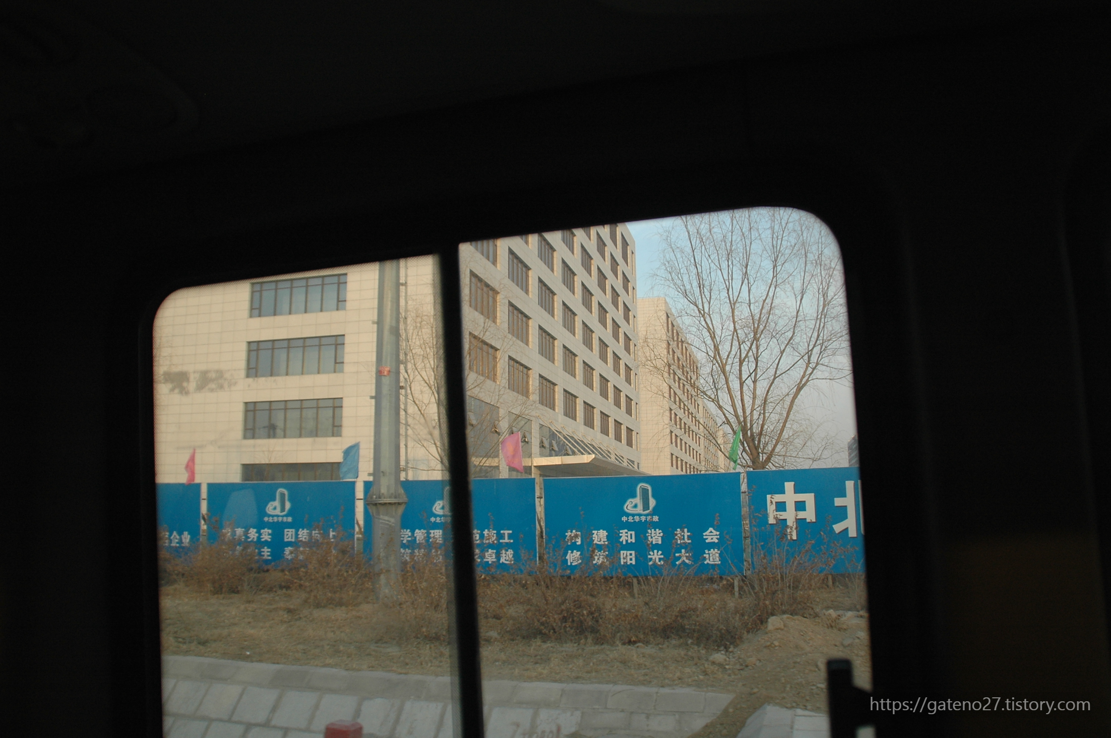 안내해준 장소로 나가니, 미니미니한 셔틀버스가 서 있었다. 좀 낡은 느낌에, 제대로 굴러는 가는지 의심스러운 버스를 타고 공항을 떠났다. 겨울이라 그런지 베이징의 하늘은 꽤나 흐리고 뿌옇다.